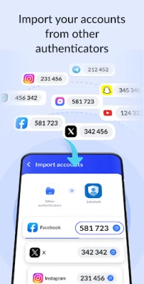 SafeAuth er konstruert for å gi et solid vern mot uautorisert tilgang, nettfisking og andre digitale trusler. Selv om noen skulle få tak i ditt brukernavn og passord, vil de mangle den essensielle koden generert av SafeAuth på din enhet for å fullføre innloggingen. Å legge til kontoer er en lek; du kan enkelt skanne 2FA QR-koder eller manuelt taste inn private nøkler, støttet av detaljerte veiledninger. I tillegg er SafeAuth uavhengig av nettforbindelse for å generere koder, noe som sikrer sømløs autentisering under alle forhold. Den støtter et imponerende spekter av tjenester, fra sosiale medier som Google, Instagram, Facebook og Twitter, til profesjonelle plattformer som LinkedIn og Github, samt kryptovaluta-lommebøker som Coinbase og tusenvis av andre.