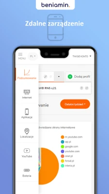 Beniamin Kontrola rodzicielska er den ultimate foreldrekontroll-appen for å administrere barnas skjermtid på PC og Android-enheter. Administrer eksternt via panel.beniamin.pl; filtrer nettsider, spor lokasjon og overvåk sosiale medier. Sett tidsplaner og blokker apper for trygg bruk.