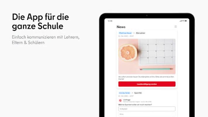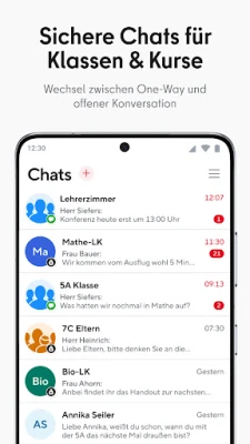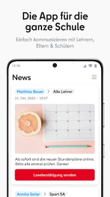 For foresatte innebærer dette en betydelig forenkling av den daglige kommunikasjonen med skolen. Viktig informasjon, som for eksempel foreldrebrev, mottas direkte på smarttelefonen, og en enkel lesebekreftelse kan sendes med ett klikk – slik at du alltid er informert og oppdatert. Appen gir også en enkel vei til å delta i skolens prosesser gjennom avstemninger, og muliggjør rask utveksling av korte meldinger eller talemeldinger med pedagogisk personale. Familier med barn på forskjellige skoler kan dessuten enkelt veksle mellom de ulike lokasjonene direkte i appens meny. Det pedagogiske personalet drar nytte av en personvernvennlig plattform som sikrer kommunikasjon i tråd med DSGVO, uten behov for private mobilnumre.
