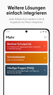 Det pedagogiske personalet har full kontroll over varsler og tilgjengelighet, med mulighet for individuelle tilpasninger og innstilling av "stilleperioder". Appen tilbyr også et fleksibelt rettighetskonsept for chat-funksjoner, hvor man kan velge mellom en enveismodus der kun personalet sender meldinger, eller en åpen chat-modus for toveiskommunikasjon. Denne modusen kan enkelt aktiveres og tidsbegrenses ved behov. Lesebekreftelser gir rask oversikt over meldingenes status. Skoleledelsen får et kraftfullt verktøy for å formidle informasjon umiddelbart eller tidsforskjøvet til hele skolesamfunnet, samt en integrert videokonferansefunksjon for fleksible foreldresamtaler uavhengig av sted. For omfattende tekstforfatting er det også mulig å benytte nettapplikasjonen via datamaskin. Ved tekniske spørsmål er dedikert telefonstøtte tilgjengelig mandag til fredag, fra kl. 07.00 til 17.00. Ytterligere tips og hjelp finner du på schulportal.berlin.de.