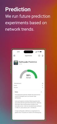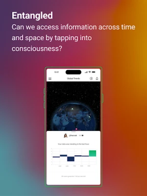 Appen gir deg umiddelbar og engasjerende innsikt i dine egne bevissthetseffekter. Gjennom interaktive visualiseringer, detaljerte grafer og personaliserte push-varsler, kan du spore din unike innvirkning. Utforsk fascinerende trender for bevissthetens påvirkning både i din egen by og på tvers av kloden, og motta varsler når interessante mønstre eller resultater fremkommer. Videre lar appen deg dykke ned i de aktuelle eksperimentene som kjører på nettverket. Hold deg oppdatert på nye funn og spennende utviklinger med varsler som holder deg informert om interessante resultater fra det stadig voksende forskningsfeltet.