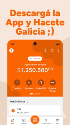 App Galicia utvider dine finansielle horisonter med avanserte verktøy for investering, lån og forsikring. Utforsk muligheter for å investere i investeringsfond eller fastrenteinnskudd, og følg nøye med på avkastningen din. Trenger du ekstra finansiering, kan du simulere og søke om personlige lån, forskudd på lønn eller ekspresslån, med umiddelbar utbetaling. Beskytt det som betyr mest med et bredt spekter av forsikringer for bil, hjem, mobil, kjæledyr og sykkel, alt tilgjengelig i appen. Vi prioriterer din sikkerhet med funksjoner som Touch ID for rask tilgang og vår integrerte Token-funksjonalitet. Skulle du ha spørsmål, er vår døgnåpne kundestøtte tilgjengelig alle dager, inkludert helligdager. Du kan også kjøpe og selge dollar, ta ut penger uten debetkort, eller finne Banco Galicias filialer og minibanker enkelt.