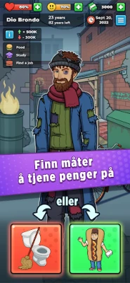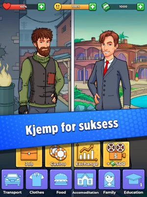 Din transformative reise mot velstand starter med grunnleggende trinn: sikre deg din første jobb, spare hver krone, og investere strategisk for å etablere din egen virksomhet. Utforsk et spekter av karriereveier, fra enkle stillinger til prestisjetunge roller etter universitetet, alt mens du finjusterer din forretningsstrategi. Bygg opp et inaktivt finansimperium som genererer inntekter selv når du er offline. Tjen ekstra midler ved å navigere i aksjemarkedets svingninger, eller prøv lykken i kasinoet for å doble formuen din raskt.