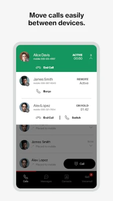 Denne altomfattende løsningen tilbyr enestående fleksibilitet med et bredt spekter av enhetsalternativer. Dra nytte av den innfødte oppringingsfunksjonen på smarttelefoner, som forbinder mobile medarbeidere sømløst over det anerkjente Verizon-nettverket. For kontorbruk forbedrer et utvalg av VoIP-telefoner, inkludert markedets første 4G-kompatible bordtelefon, samt konferanse- og trådløse modeller, både samtaler og samarbeid. I tillegg gir One Talk en dedikert mobilapp for smarttelefoner og nettbrett (uavhengig av mobilleverandør) og en desktop-app for PC og Mac®, som gjør det enkelt å ringe, motta videosamtaler og sende SMS direkte fra datamaskinen.